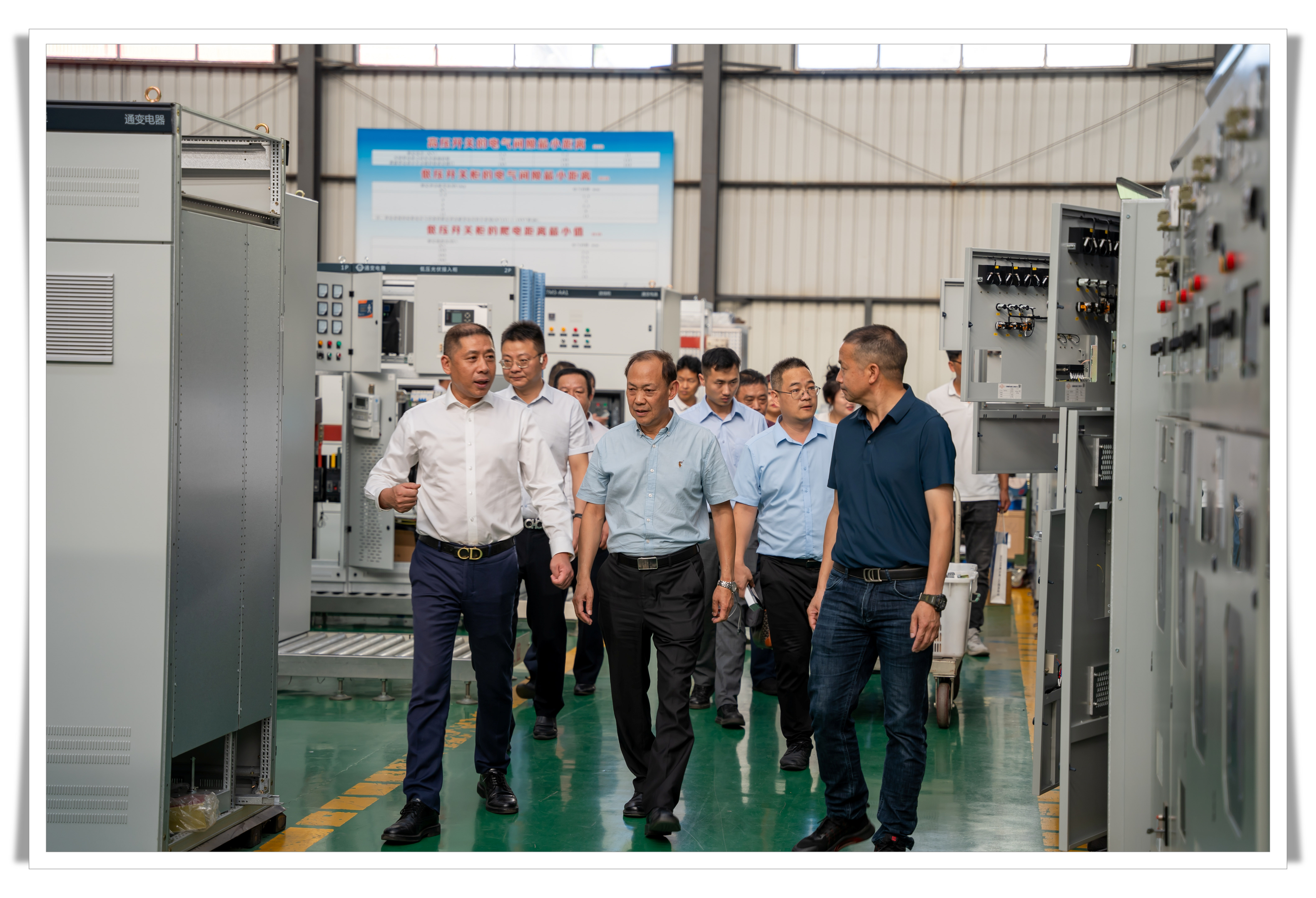 在公司領導的引領下,大家一同探訪了變壓器生產車間、箱式變電站生產車間以及高低壓成套設備廠,近距離觀看了生產線、及裝配現場,聆聽著公司技術人員對產品的介紹和講解后,全面了解了公司的生產制造工藝和產品原材料選用,讓大家感受到了工匠精神的傳承。這樣的生產現場,不僅展現了通變電器的實力和技術水平,更激發了在座企業家們對技術創新和生產質量的追求。